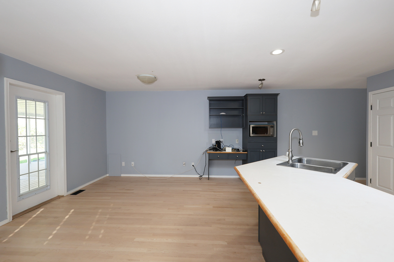 desk, walk through bay window, french door off kitchen to covered deck, spacious